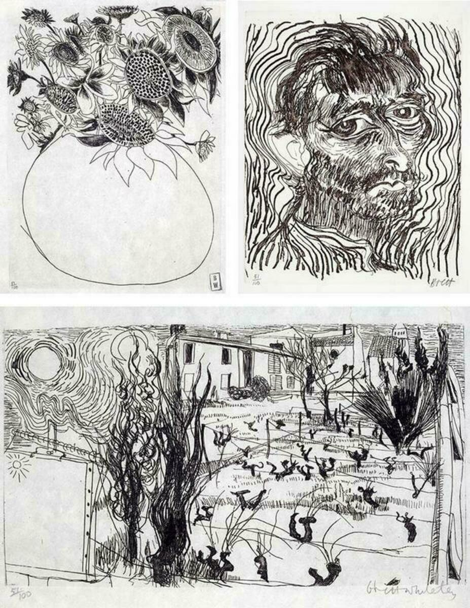 The Back of the Asylum, St Remy 1983: Another Way of Looking at Vincent Van Gogh 1888-1889 ( suite of 3 euthings) - Brett Whiteley